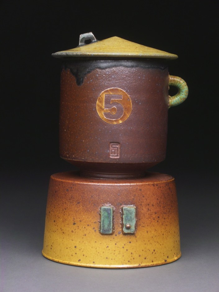 Lidded Cup and Saucer, Soda Fired Stoneware, 6x4x4