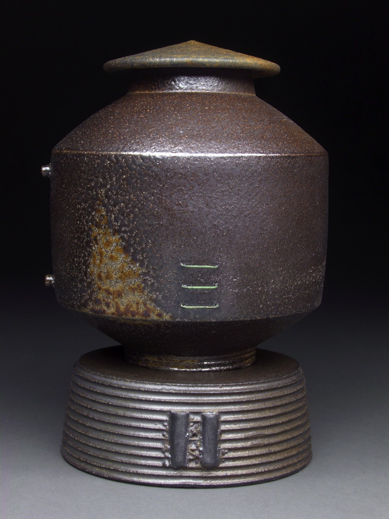 Lidded Jar with Base, Soda Fired Stoneware, 9x6x6