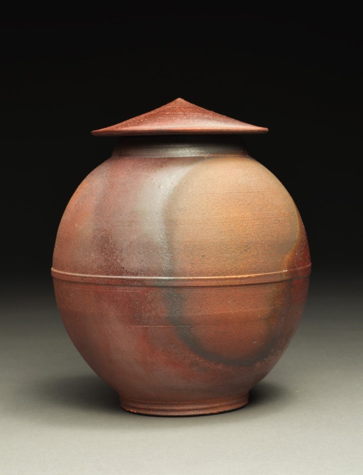 Lidded Jar, Wood Fired Reduction Cooled Stoneware, 6x5x5