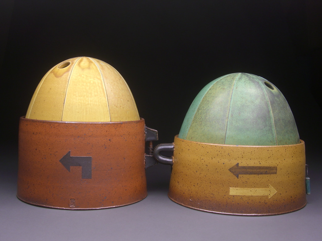 Lidded Jars with Serving Baskets, Soda Fired Stoneware, 9x17x8